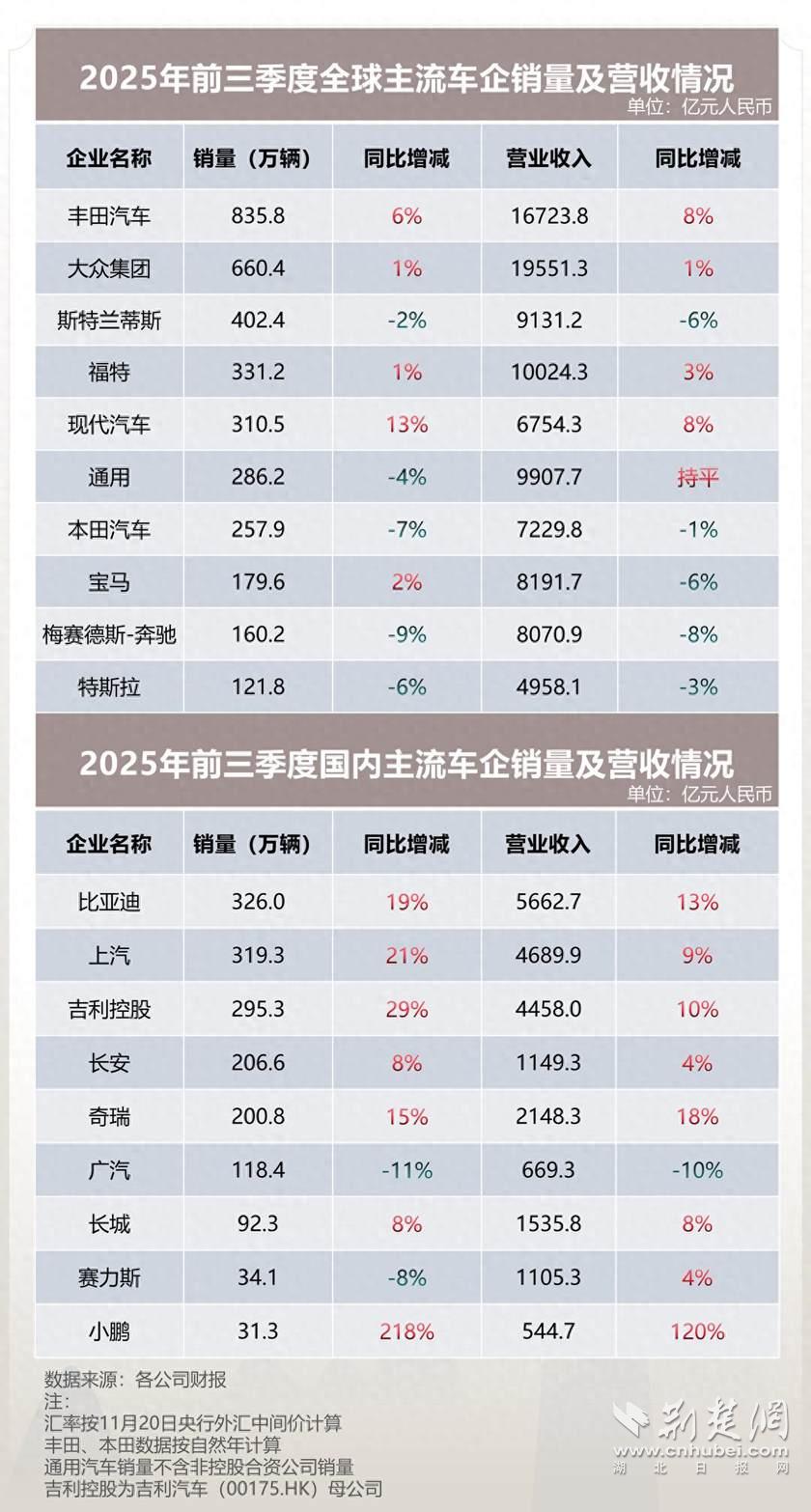 2025年即将结束,全球汽车行业面临严峻的周期性调整期。第三季度数据显示,全球主要汽车企业增速均出现放缓。