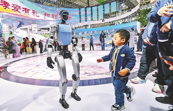 11月29日,在武汉国际展览中心举办的2025湖北农博会上,两台人形机器人在随州展区充当“保安”,维持场馆秩序。 (湖北日报全媒体记者 朱西勇 提供)