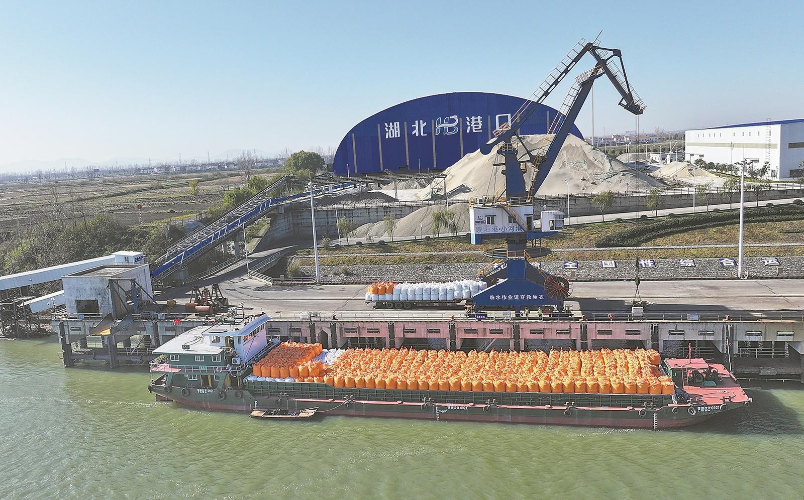 11月25日,襄阳小河港,一艘运输船正在吊运农产品,准备运往浙江。襄阳小河港是汉江流域规划建设的最大港口。目前,该市生产的各种农产品通过港口通过水运销往全国,支撑着日本的农业生产。 图片提供:全媒体记者安福斌 宋敏通讯员 李勤