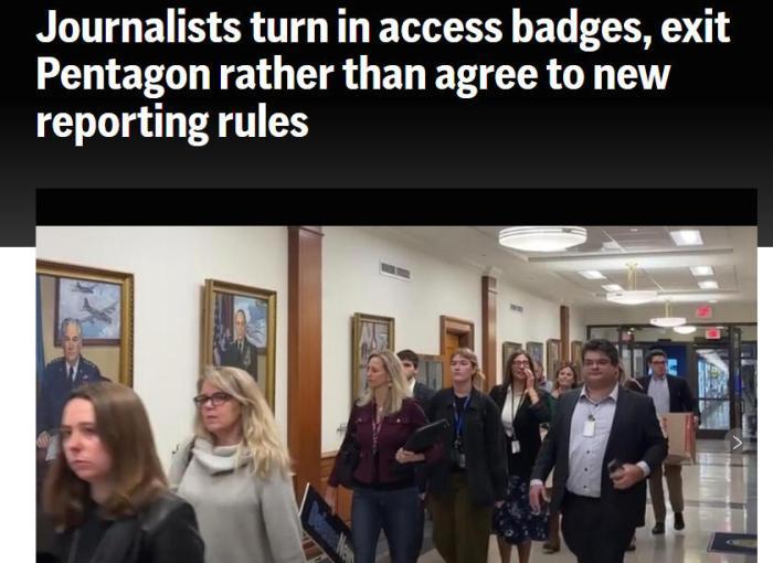 中新社10月16日电 据美国媒体综合报道,当地时间15日,数十名记者因无法接受新规定,放弃了前往五角大楼的往返通行证,选择离开五角大楼。图片来源:美联社报道截图 据报道,根据新规定,记者如果试图报道未经国防部长赫格斯塞斯批准的信息,可能会面临被驱逐的风险。新规定还包括“限制无人陪伴的记者进入某些区域”。据美国广播公司(ABC)报道,下午 4 点。当地时间15日,正当五角大楼设定的最后期限临近时,五角大楼的大厅里堆满了成箱的文件,40至50名记者交完证件后集体离开。连日来,美国多家主流媒体均公开表示拒绝配合新规问题d 由美国国防部。 《大西洋月刊》主编杰弗里·戈德堡表示:“这些诉讼侵犯了第一修正案的权利,也侵犯了美国人民了解纳税人资助的资源和军事人员如何部署的权利。”