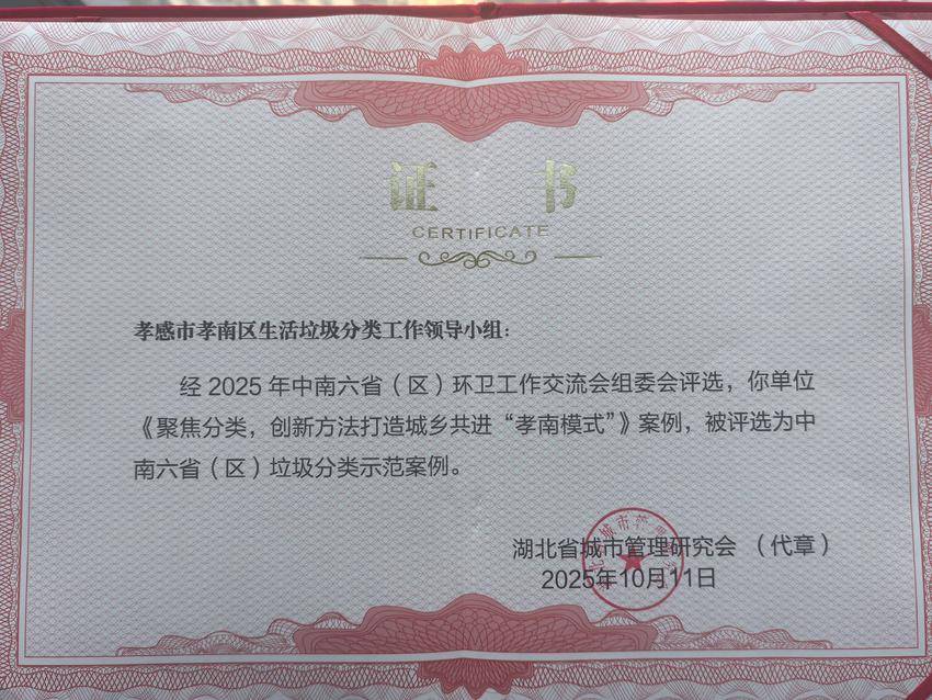 荆楚网(湖北日报)(通讯员 王晓亮)近日,孝南区城管执法局举报的“聚焦分类,创新方式,打造城乡进步‘孝南模式’”案例被评为中南六省(区)垃圾分类示范案例。