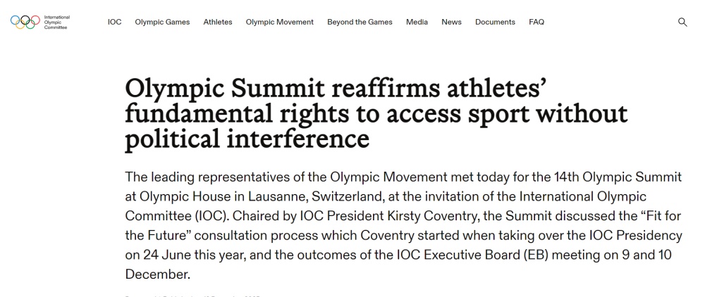 第十四届奥林匹克峰会11日在洛桑国际奥委会总部举行。峰会支持国际奥委会执行委员会关于取消对俄罗斯和白俄罗斯青少年参加国际比赛限制的提议。